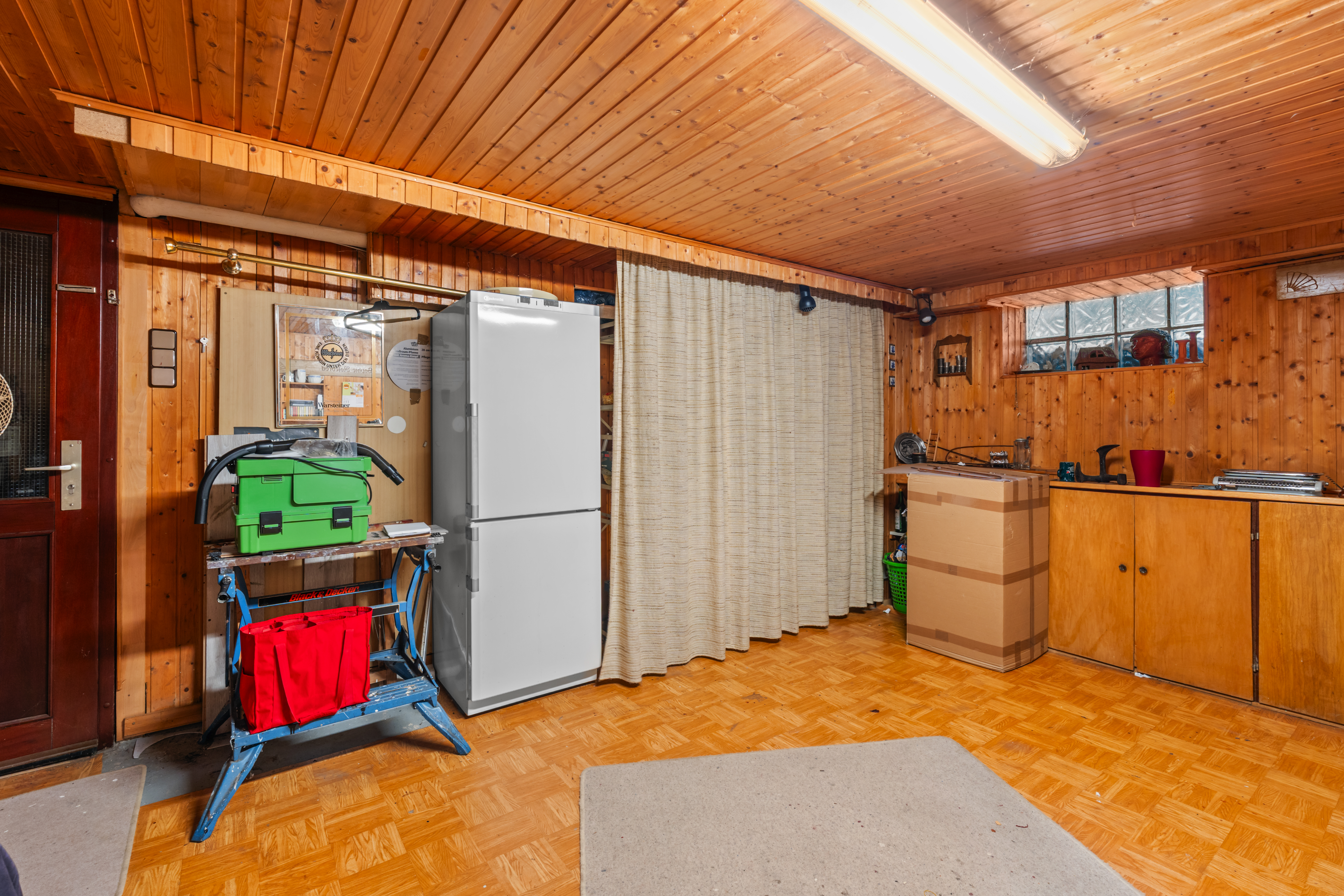 Der Keller verfügt über einen Hobbyraum mit direktem Gartenzugang, einen zusätzlichen Kellerraum zur Nutzung als Abstellfläche, sowie einen Versorgungsraum mit Duschmöglichkeit.