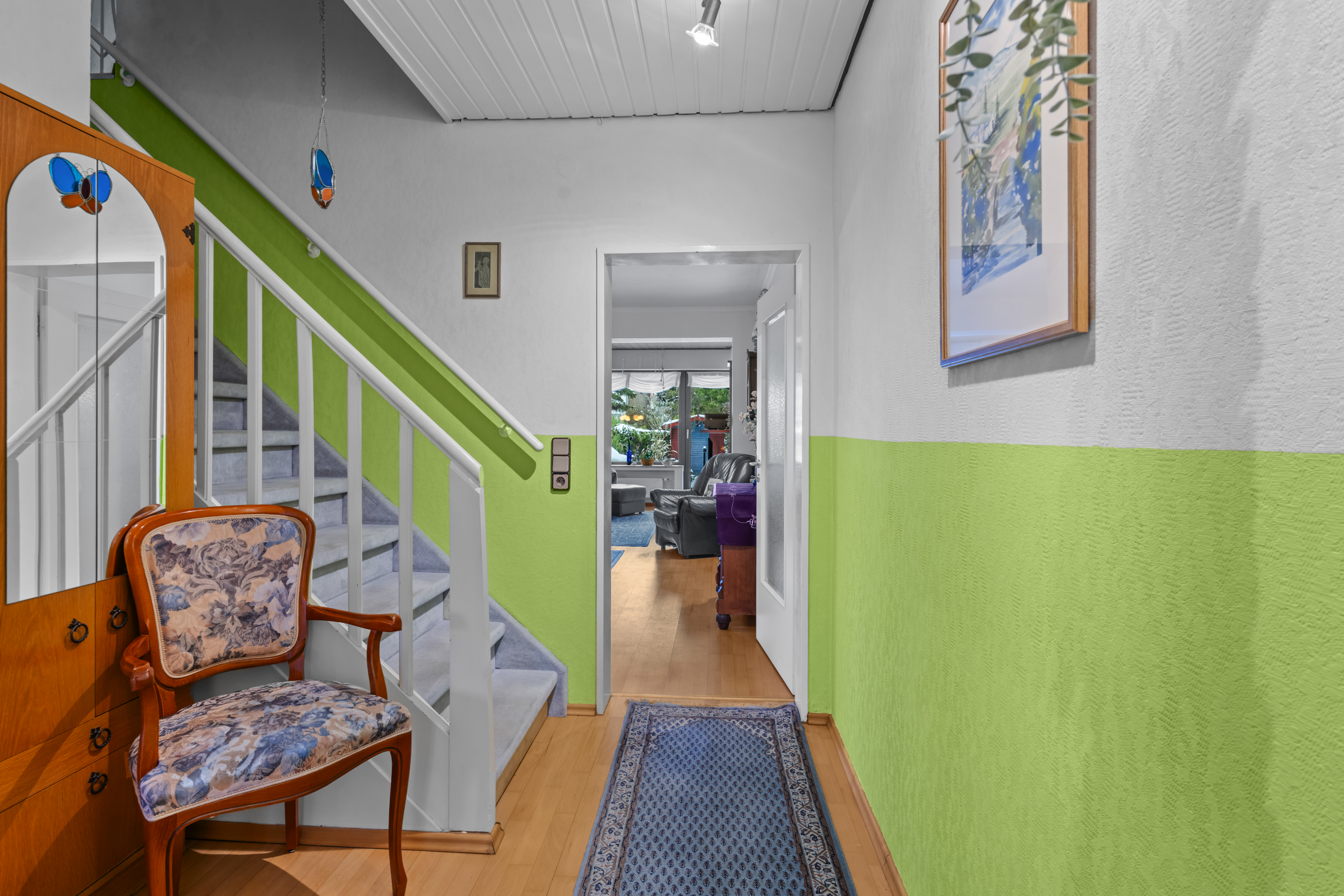 Hier beginnt Ihr neues Familienleben: Dieses gepflegte Reihenendhaus bietet den perfekten Rahmen für gemeinsames Wohnen. Das großzügige Wohnzimmer mit großer Fensterfront und Zugang zur Terrasse schafft eine helle, freundlichen Atmosphäre und wird schnell zum Mittelpunkt des Familienalltags. Über den Windfang betreten Sie den gut geschnittenen Flur, der ausreichend Platz für eine Garderobe bietet und das Haus angenehm strukturiert erschließt. Von hier aus erreichen Sie die Küche mit Einbauküche und direktem Zugang zum Keller, sowie das Gäste-WC, praktisch und alltagstauglich.